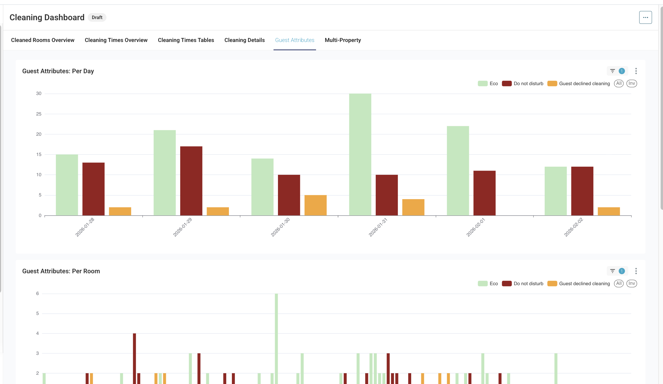 If you have access to multiple properties or tenants, one dashboard can show combined data. This is especially useful for hotel groups, chains, and HQ teams. You can also control data visibility by setting custom user permissions.