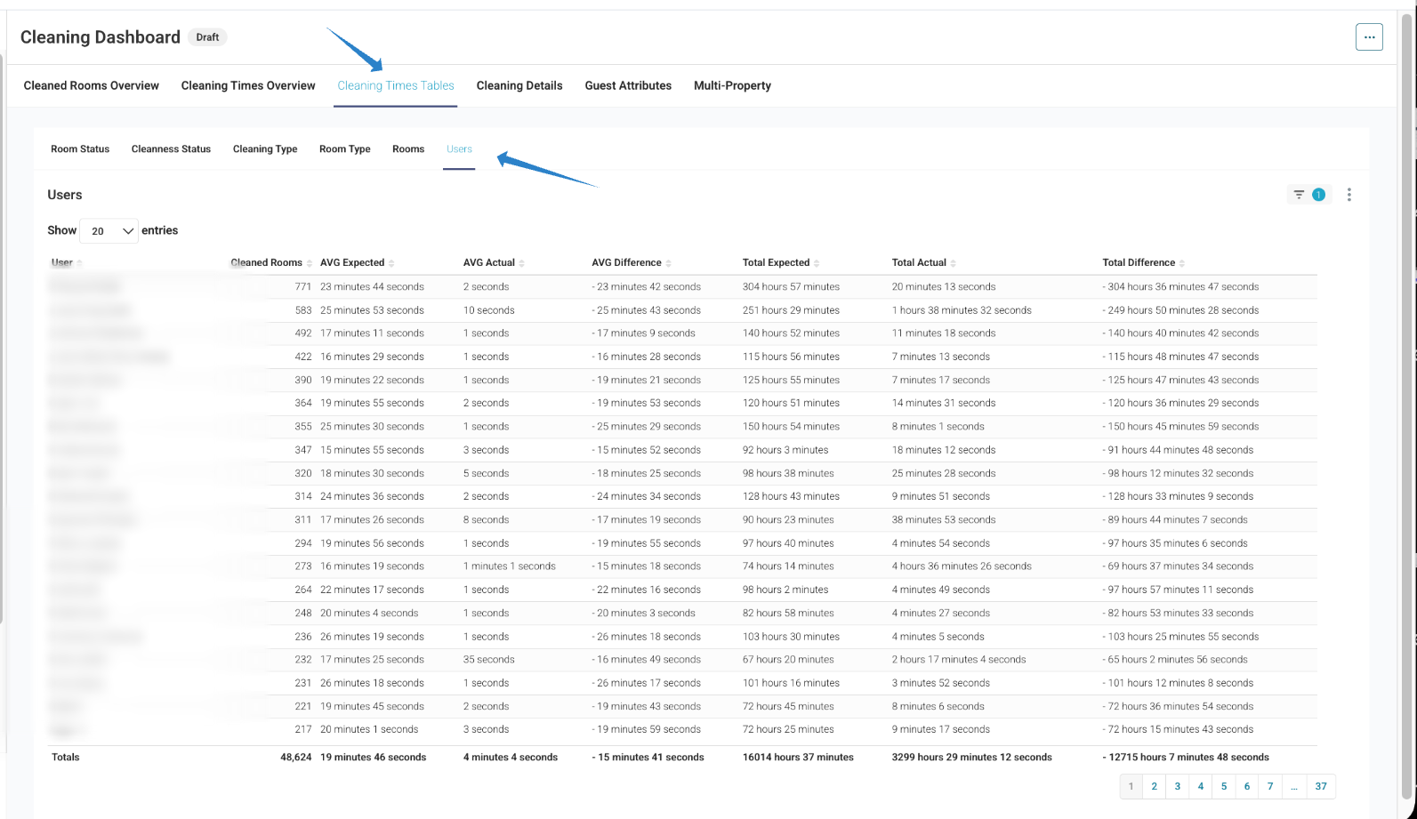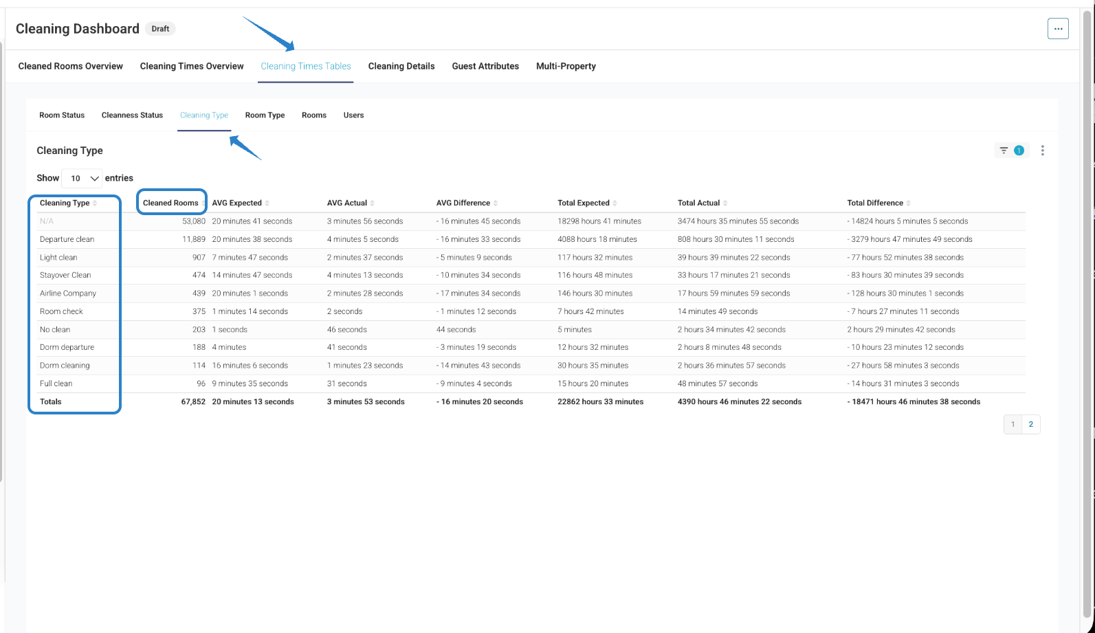 This helps identify where cleaning takes longer than expected and where processes may need adjustment.