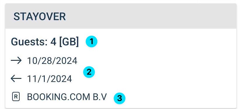 - Flexkeeping peut afficher la source de réservation, le nom de la société ou du groupe, disponible pour certaines intégrations spécifiques. Contactez le support pour l’activer.